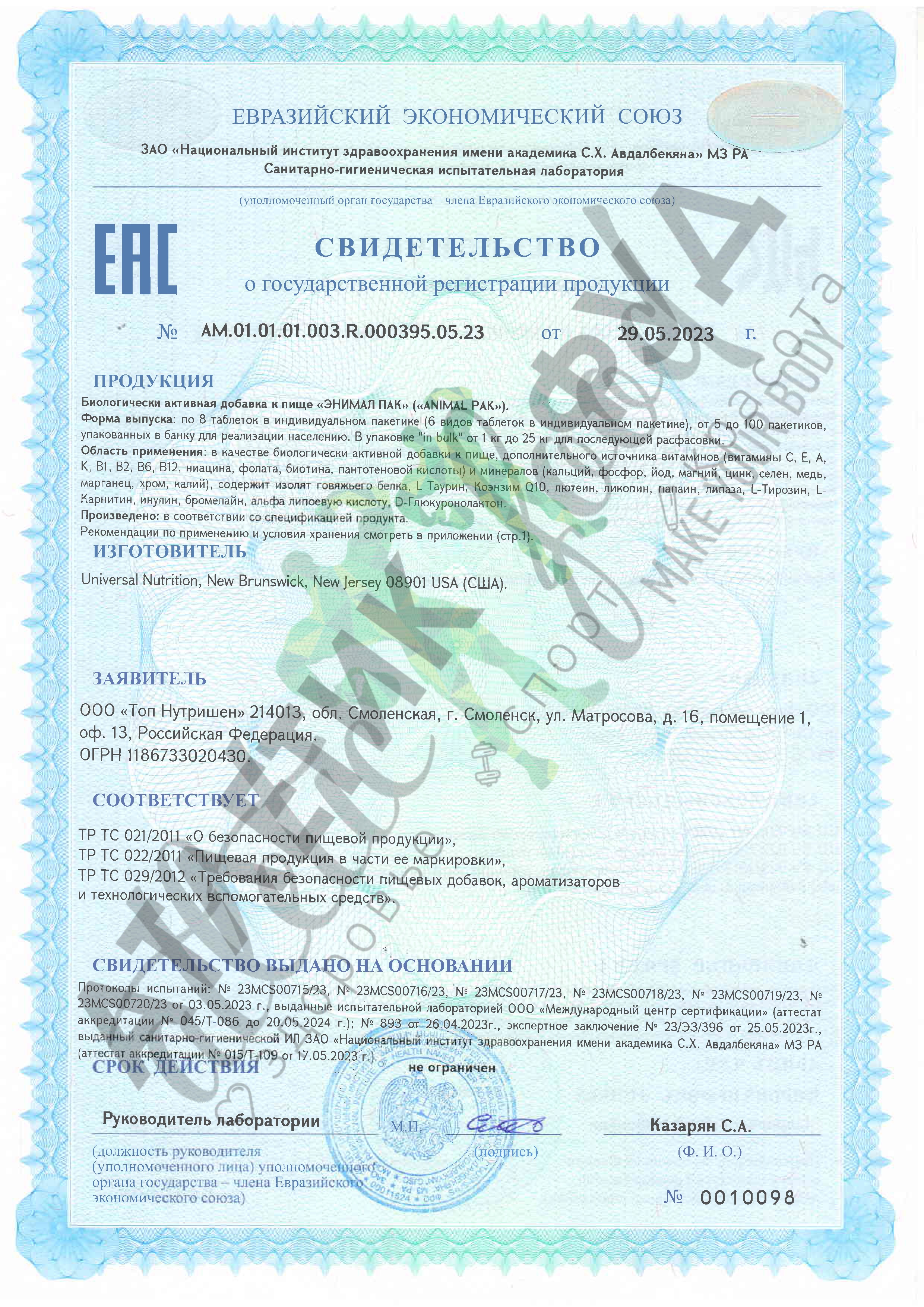 Прием Юниверсал Нутришн Энимал Пак противопоказан при индивидуальной непереносимости, во время беременности и лактации.