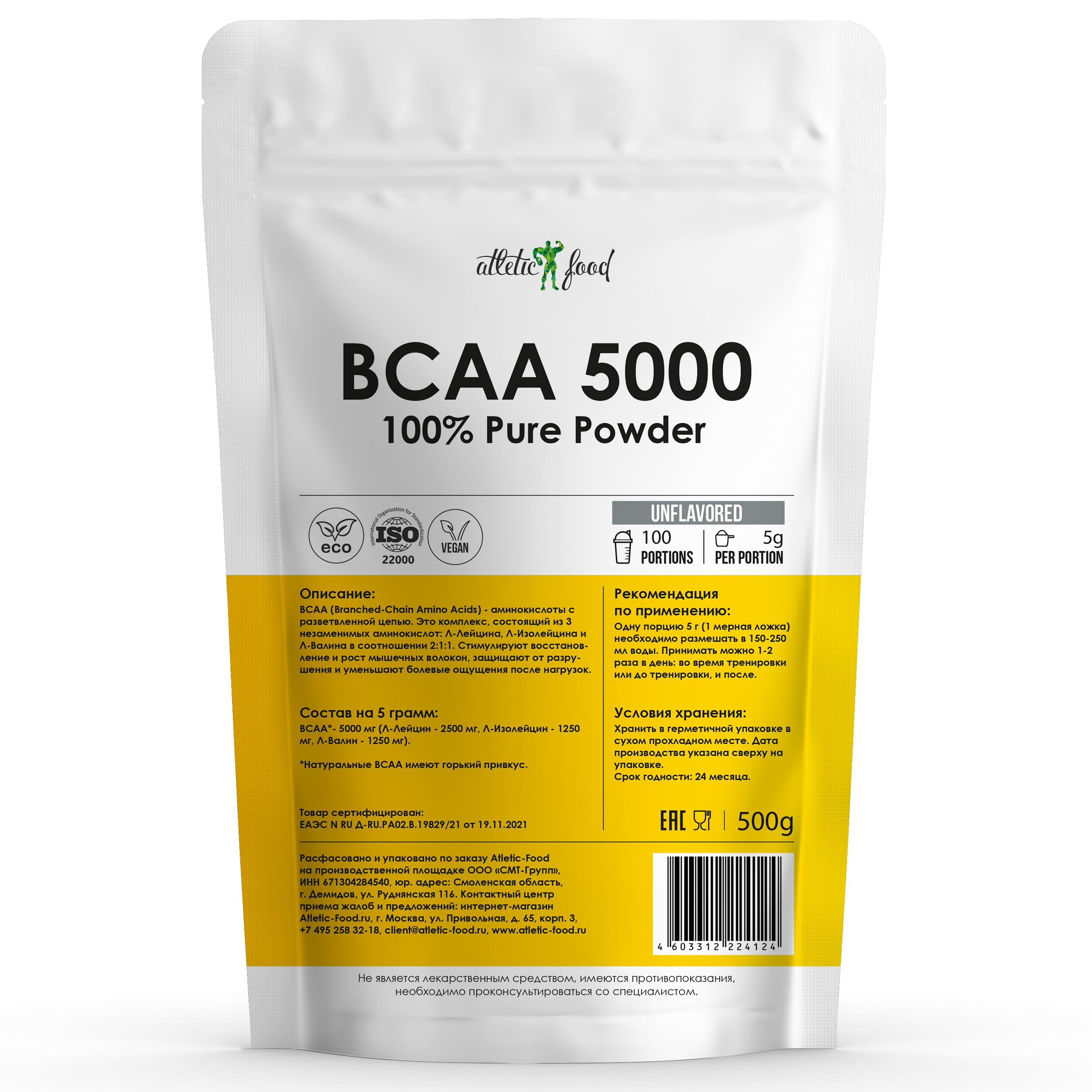 Atletic Food 100% Pure BCAA 5000 (2:1:1) - 500 грамм (без вкуса)