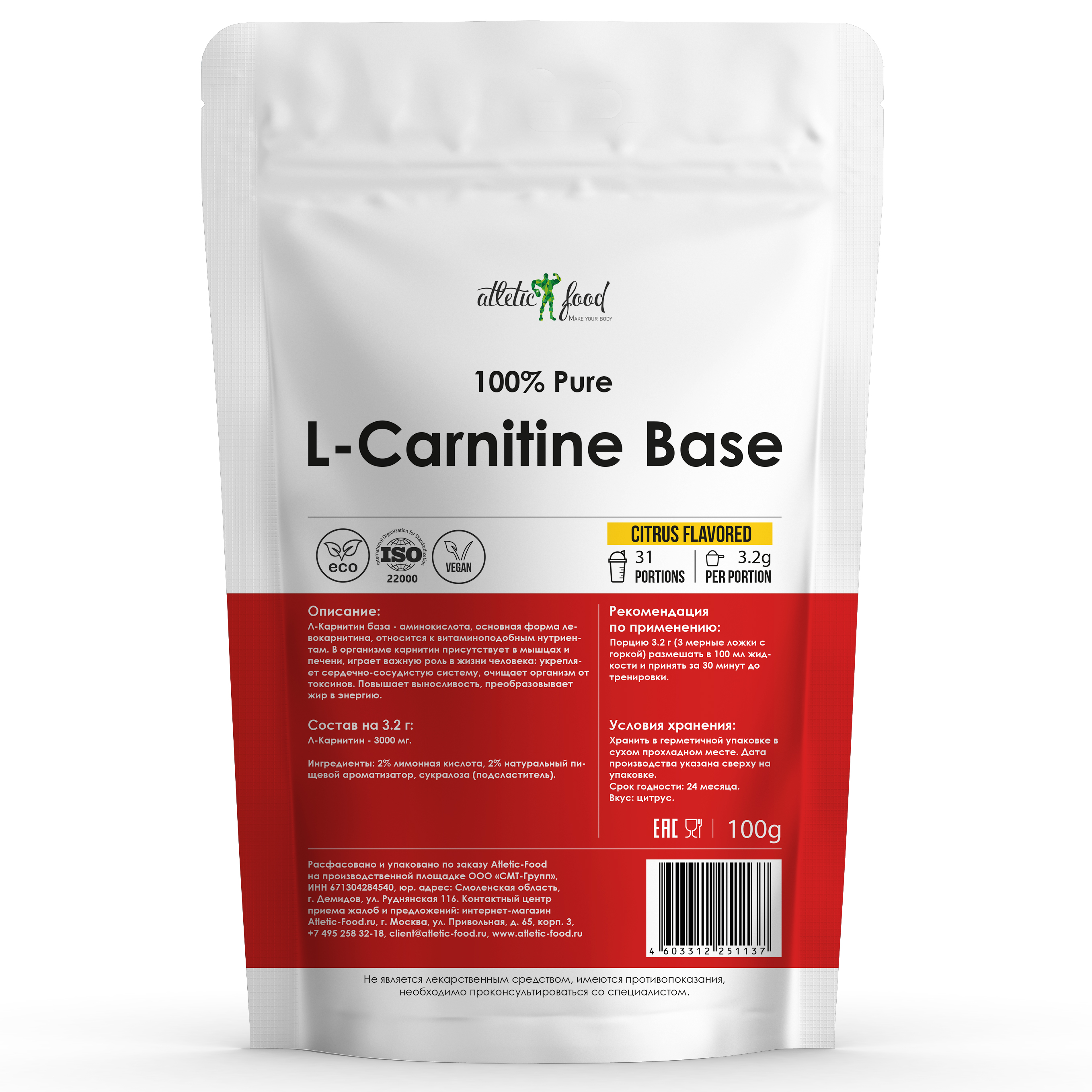 Atletic Food 100% Pure L-Carnitine Powder - 100 грамм (со вкусом)