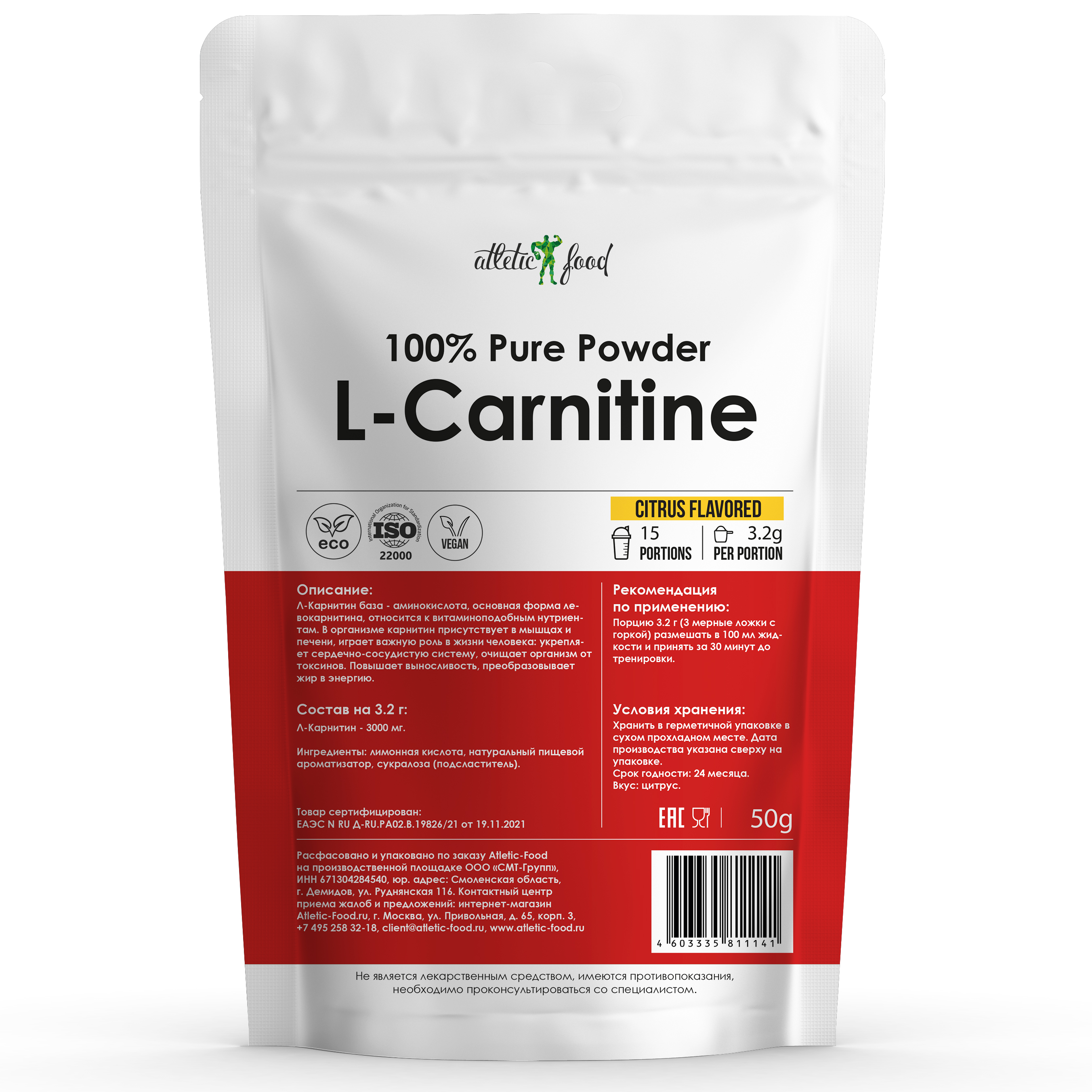 Atletic Food 100% Pure L-Carnitine Powder - 50 грамм (со вкусом)