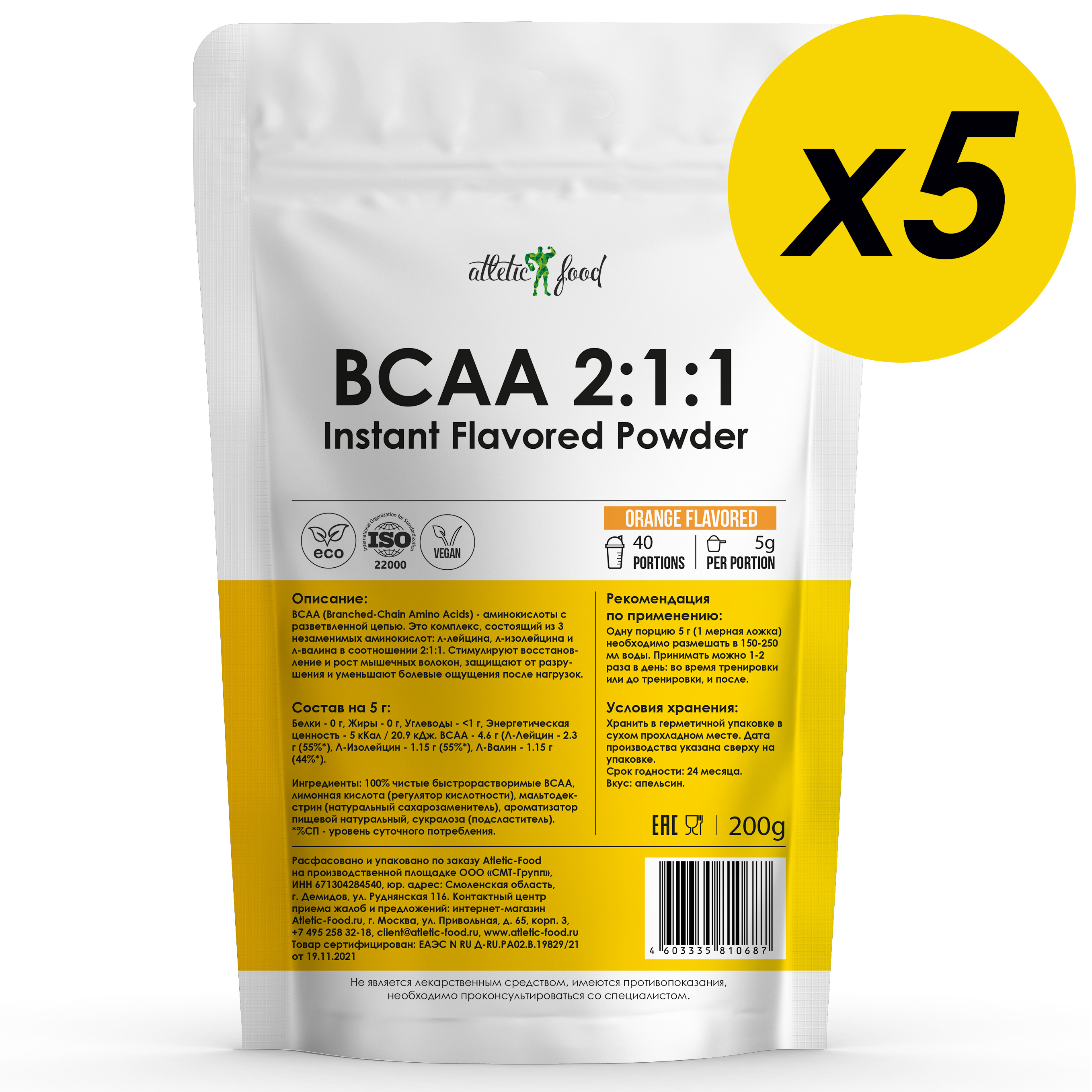 Быстрорастворимый аминокислотный комплекс Atletic Food BCAA Instant 2:1:1 Flavored Powder снижает утомляемость во время тренировок, стимулирует рост мышечной массы, защищает мускулатуру от разрушений. Принимая эту добавку, вы сможете быстрее нарастить мышцы и получить красивую фигуру.