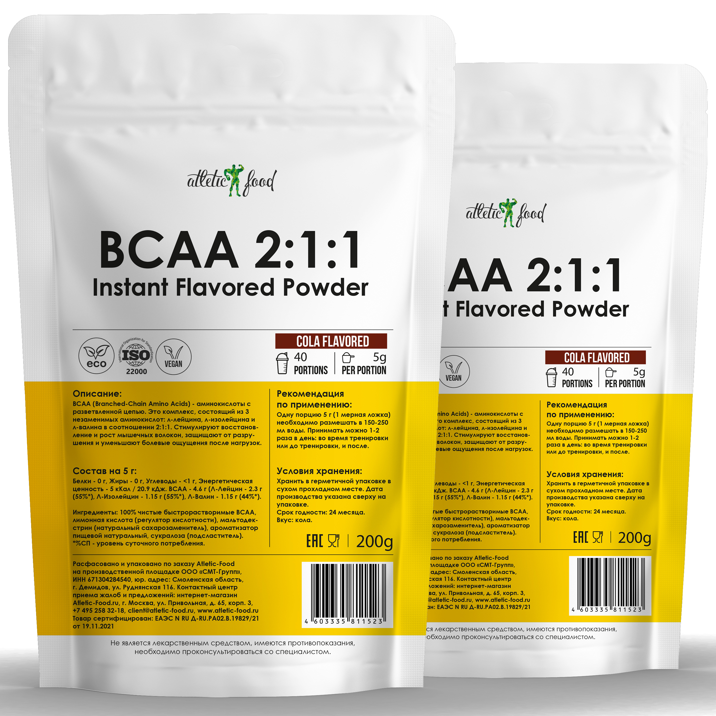 Atletic Food BCAA 2:1:1 Instant Flavored Powder (кола) - 2х200 грамм