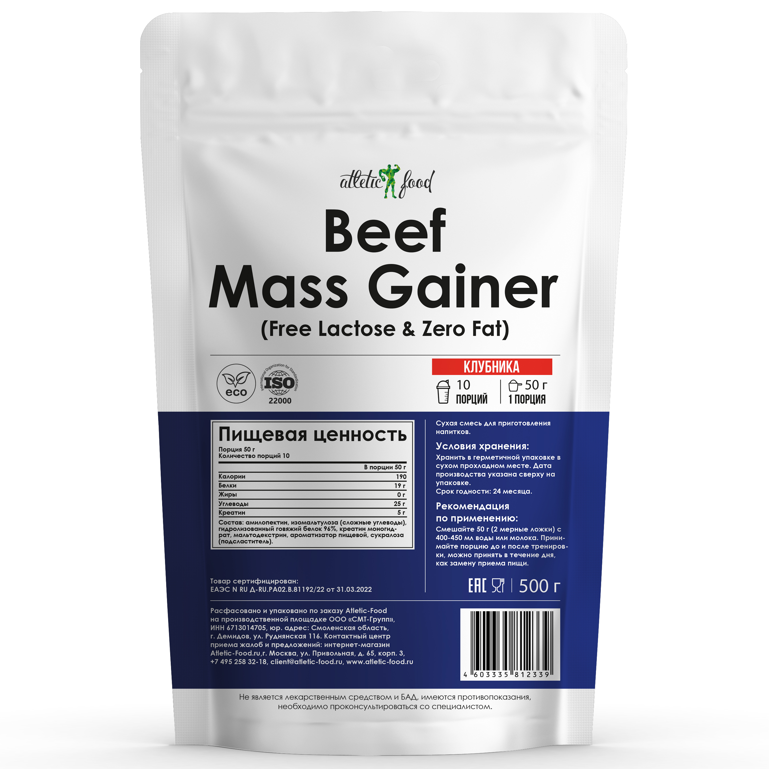 Atletic Food Beef Mass Gainer (Free Lactose & Zero Fat) - 500 грамм
