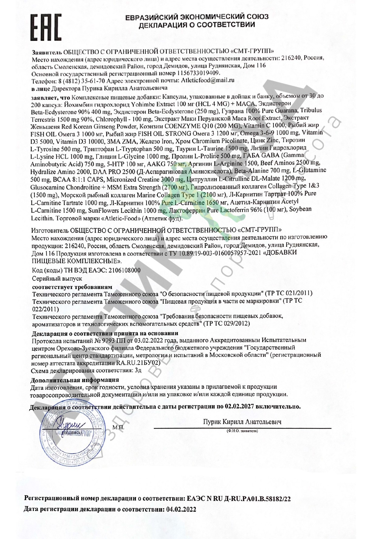 Прием Atletic Food Hydro Beef Aminos повышает защитные функции организма, улучшает работу нервной системы, повышает выносливость.