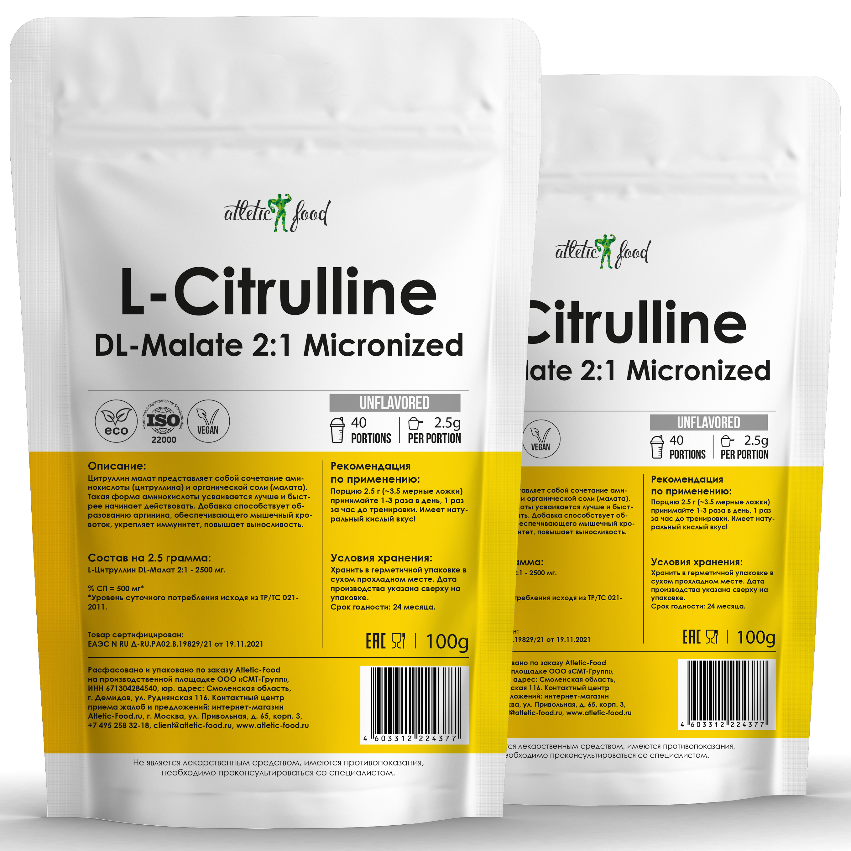 Atletic Food L-Citrulline DL-Malate 2:1 Micronized - 2х100 грамм