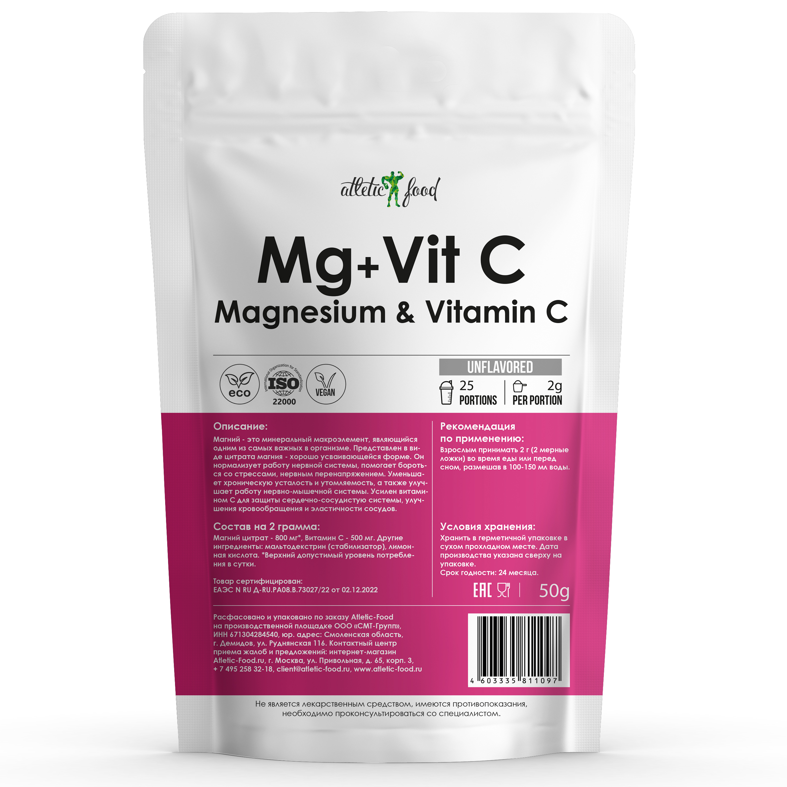 Магний и витамин С Atletic Food Magnesium + Vitamin C - 50 грамм