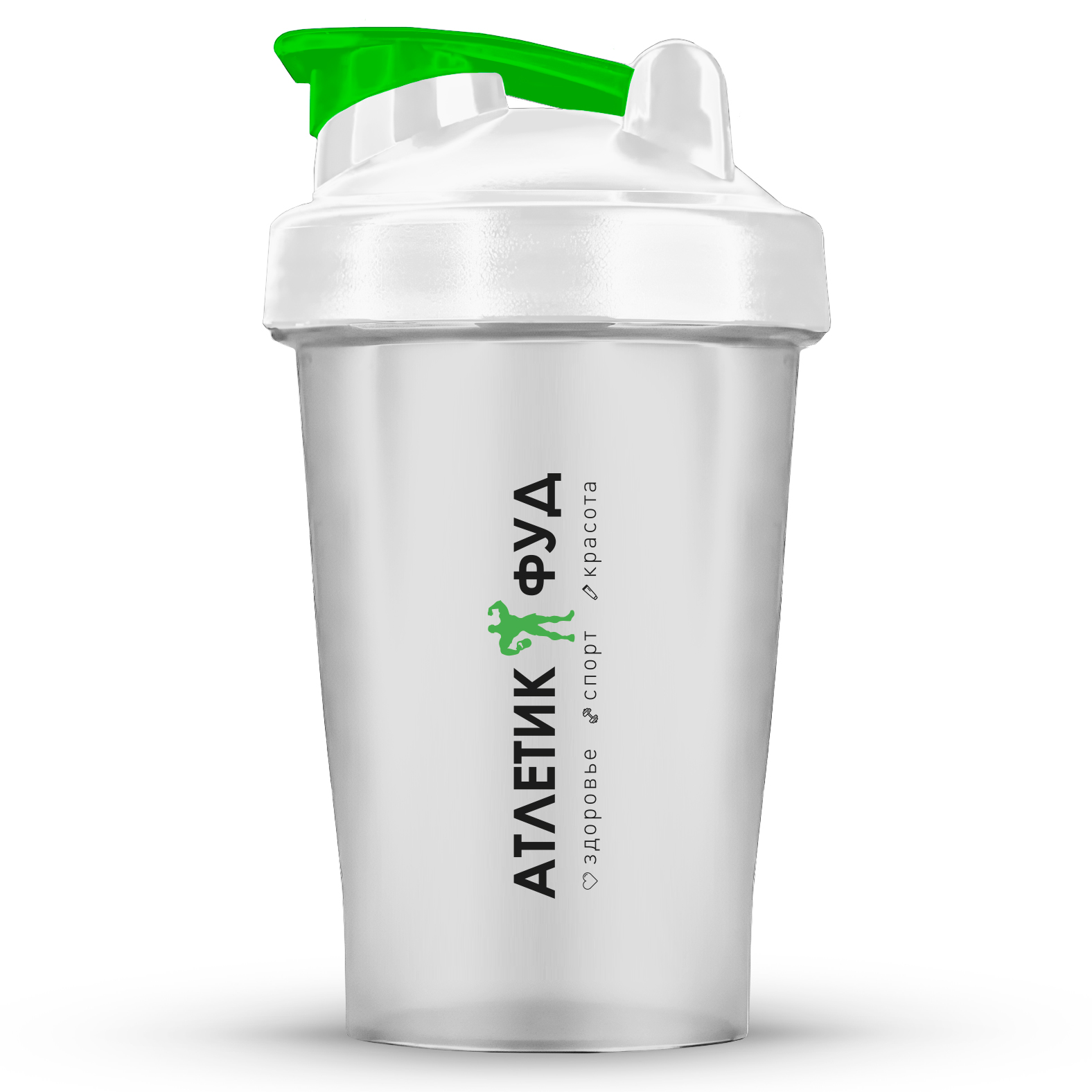 Atletic Food шейкер спортивный с сеточкой - 400 мл (белый прозрачный)