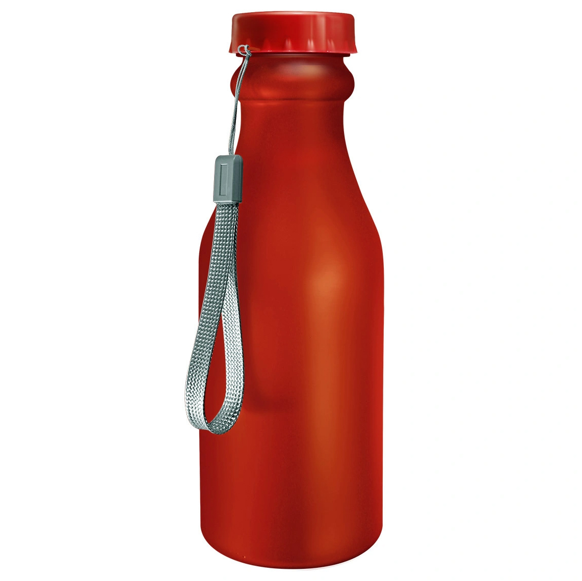 Классическая спортивная бутылка для воды и холодных напитков. Изготовлена из качественного пищевого пластика. Цвет – красный, матовый, стенки непрозрачные. Имеется удобный держатель, позволяющий носить бутылку на запястье, поясе или велосипеде.