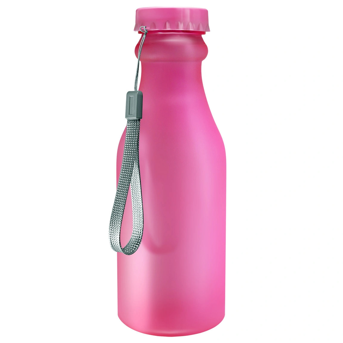 Классическая спортивная бутылка для воды и холодных напитков. Изготовлена из качественного пищевого пластика. Цвет – розовый, матовый, стенки непрозрачные. Имеется удобный держатель, позволяющий носить бутылку на запястье, поясе или велосипеде.