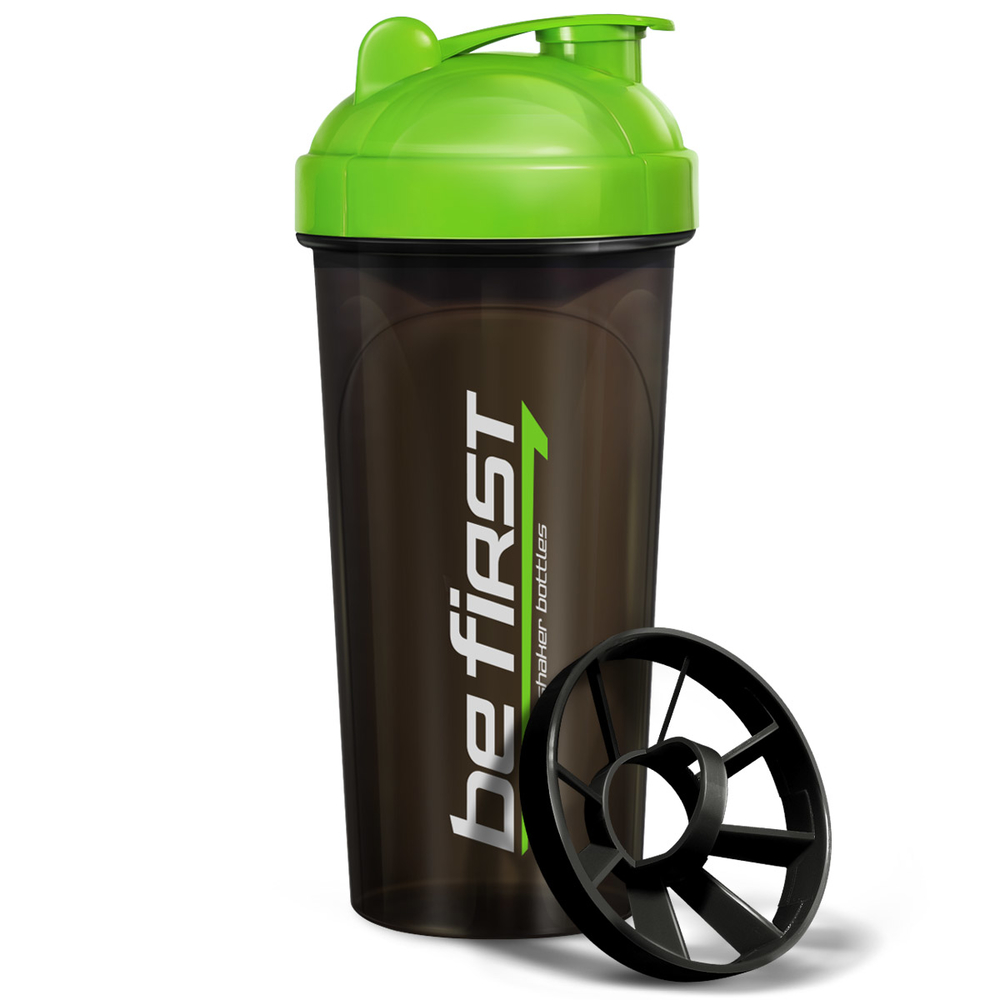 Прекрасный спортивный пластиковый шейкер Be First солидного объема 700 мл, идеально круглой формы без дополнительных усложнений. Моется очень легко, так как внутри нет совершенно никаких выступов и неровностей. Мерные шкалы с боков помогут отмерить нужное количество жидкости. Крышка на резьбе. В ней имеется жесткий клапан, закрывающий овальный носик. Клапан откидывается на 180 градусов, так что пить совершенно не мешает. Сетка крупная с лопастями и удобной петлей для вынимания и установки. Все шейкеры имеют приятные насыщенные цвета. Выполнен из пищевого ECO пластика.