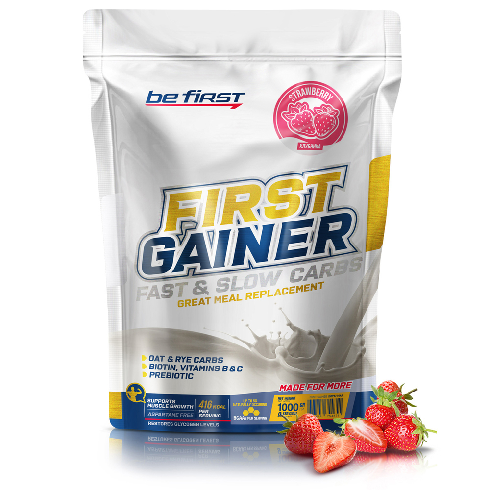 Гейнер на быстрых и медленных углеводах Be First Gainer Fast & Slow Carbs - 1000 грамм клубника