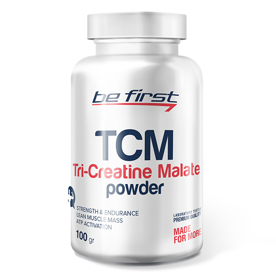 Трикреатин малат – это известный всем спортсменам креатин в новой форме. Особенность этой добавки заключается в том, что каждые три молекулы креатина соединены с молекулой яблочной кислоты. Такое сочетание дает отличное усвоение, в отличие от традиционного креатина моногидрат. Купить Be First TCM (Tri-Creatine Malate) Powder рекомендуется при интенсивных нагрузках, когда организм нуждается в повышении выносливости и силы.