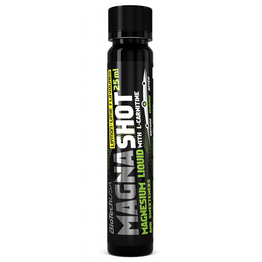 Добавка BioTech Magna Shot содержит магний, L-карнитин, экстракт зеленого чая, калий и витамин B6. Предназначена для устранения дефицита магния, который часто возникает на фоне интенсивных физических нагрузок. Купить этот продукт рекомендуется для увеличения физической силы, концентрации внимания и защиты сердечно-сосудистой системы.