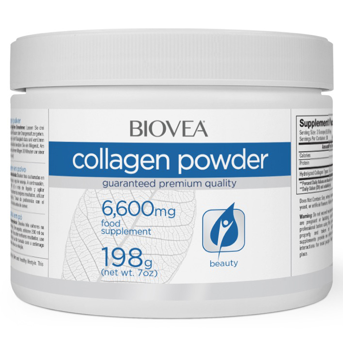 Biovea Collagen Powder 6600mg - 198 грамм включает в себя смесь полезных аминокислот и позволяет пополнить «коллагеновые запасы» в организме человека. Не секрет, что после 25 лет способность организма вырабатывать коллаген ежегодно сокращается на 1,5%. Поэтому, чтобы поддерживать организм в здоровом состоянии, следует дополнительно принимать добавки с высоким содержанием данного элемента. Систематическое употребление Коллаген Павдер 6600 мг от торговой марки Биовеа позволяет улучшить эластичность всех соединительных тканей. Укрепить костную ткань. Улучшить состояние волос и ногтей, а также бороться с признаками преждевременного старения кожного покрова. Кроме этого, представленная добавка дает возможность укрепить мышечную ткань. Благодаря этому препарат широко используется как начинающими, так и опытными спортсменами. Порошок Biovea Collagen Powder не имеет вкуса, а также запаха. Напиток с его содержанием не оставляет неприятного послевкусия. Одна упаковка препарата рассчитана на 30 порций приема.
