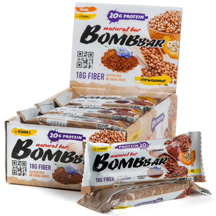 BomBBar протеиновый батончик (грецкие орехи с медом) - набор 20 шт по 60 грамм