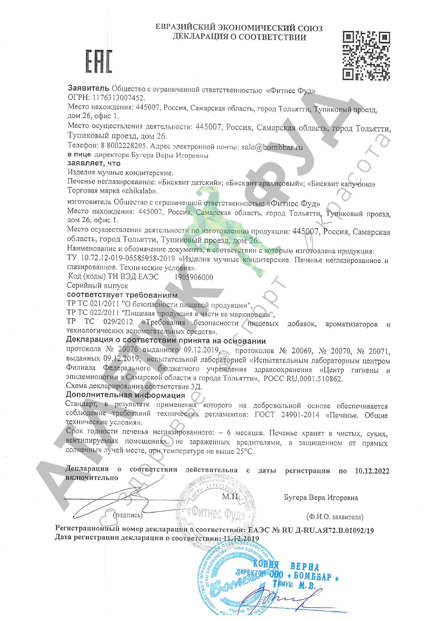 Протеиновое бисквитное печенье Chikalab – это вкусный низкокалорийный десерт, которым можно утолить голод после тренировки, на прогулке, учебе или работе. В каждой порции содержится 15 гр белков из концентрата сывороточного и молочного протеина. Углеводов всего 2,1 гр, которые благодаря пищевым волокнам хорошо усваиваются и в течение длительного времени дарят энергию.