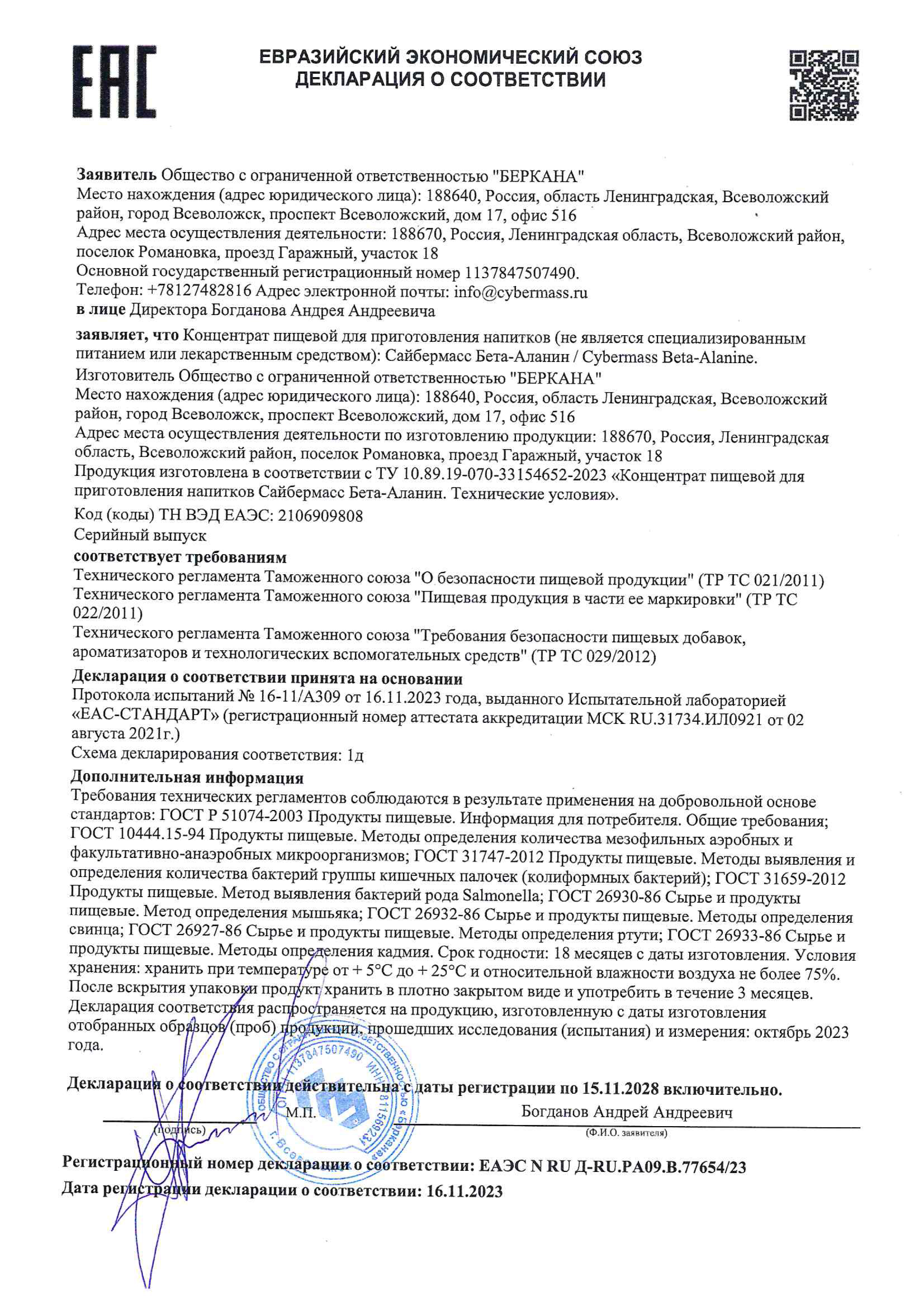 Прием Кибермасс Бета-Аланин противопоказан при индивидуальной непереносимости компонентов, во время беременности и лактации.