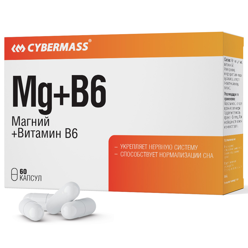 Комплекс Cybermass Mg + B6 создан для тех, кто ежедневно сталкивается с высокими нагрузками – как эмоциональными, так и физическими. Если вы живёте в режиме постоянного стресса и нервного напряжения, Mg + B6 поможет восстановить душевное равновесие и устойчивость. Тем, кто страдает от бессонницы, раздражительности или хронической усталости, добавка подарит глубокий сон и спокойствие.