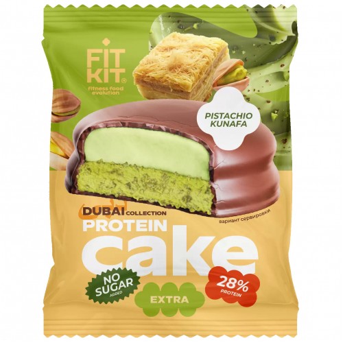 Если вы любите восточные сладости, но следите за питанием, FIT KIT Extra Protein Cake (фисташковая кунафа) – это то, что вам нужно! Этот десерт сочетает в себе нежнейший фисташковый мусс, мягкое печенье с дробленой фисташкой и покрытие из молочного шоколада – и все это без сахара, но с высоким содержанием белка.