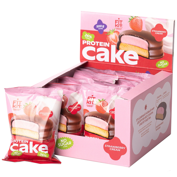 Протеиновое печенье Fit Kit Protein Cake – это вкусный и полезный десерт, который не навредит вашей фигуре. В каждой порции содержится 13 гр. белка, получаемых из смеси концентратов сывороточного и молочного протеина.