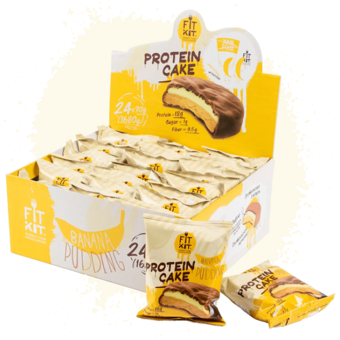 Печенье протеиновое глазированное FIT KIT Protein Cake (банановый пудинг) - набор 24 шт по 70 грамм