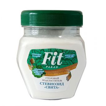 ФитПарад подсластитель стевиозид свита широко используется в лечебно-профилактическом, а также в диетическом питании. По рекомендациям врачей, данный продукт может применяться в составе диетотерапии людей, страдающих сахарным диабетом 2-го типа. Он не содержит генетически модифицированных элементов, поэтому не наносит вред организму человека.