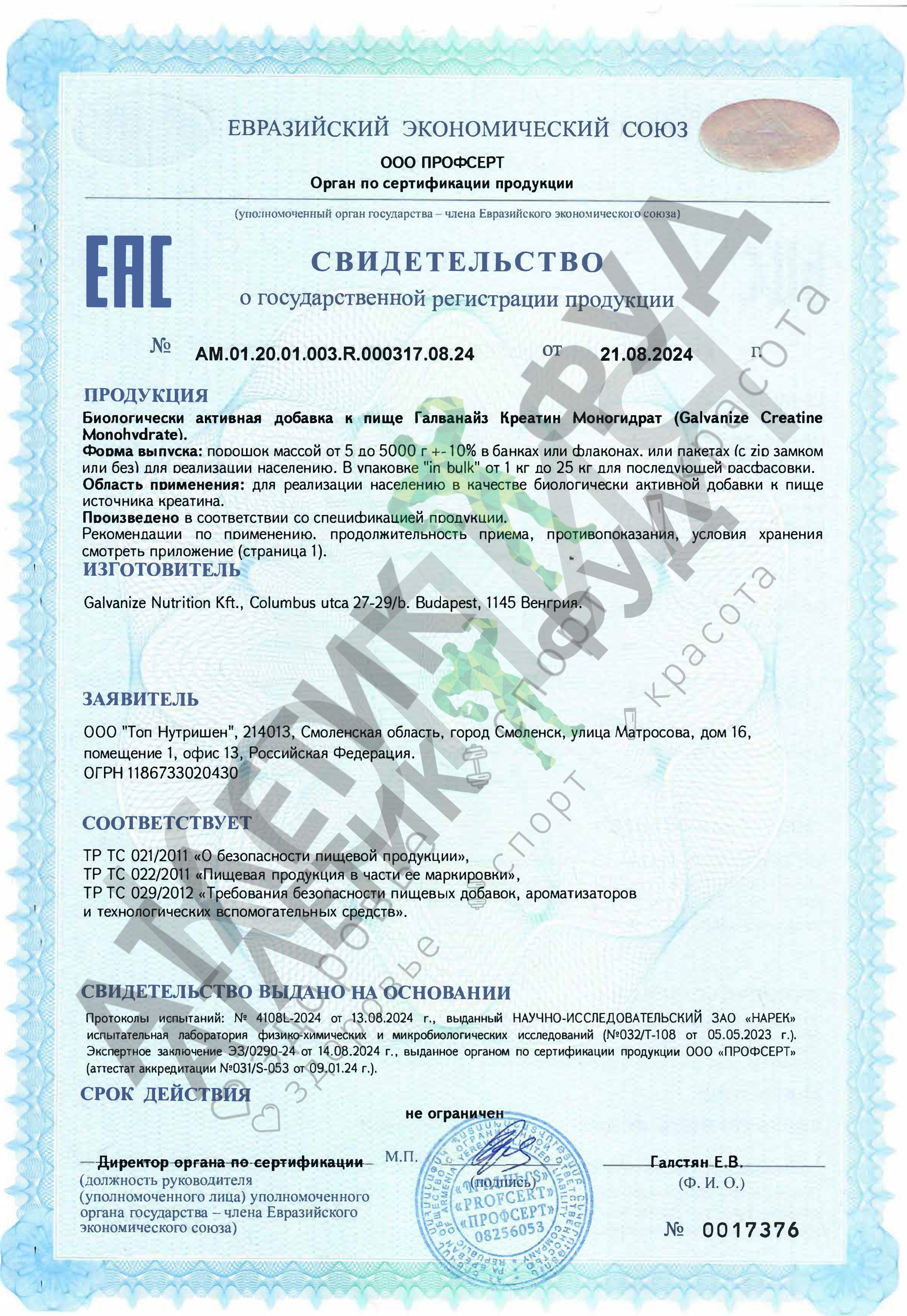 Польза от приема Galvanize Nutrition Creatine Monohydrate: