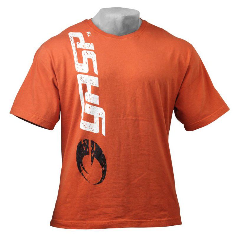 Яркая мужская футболка. Легкая и мягкая ткань. Подходит для занятий спортом и уличной жизни. На лицевой стороне справа, а также вдоль спины - массивная потертая надпись GASP. Футболка оснащена широкими рукавами. Круглый вырез. Представлена в оранжевом цвете. Выполнена из натурального хлопка (100%).