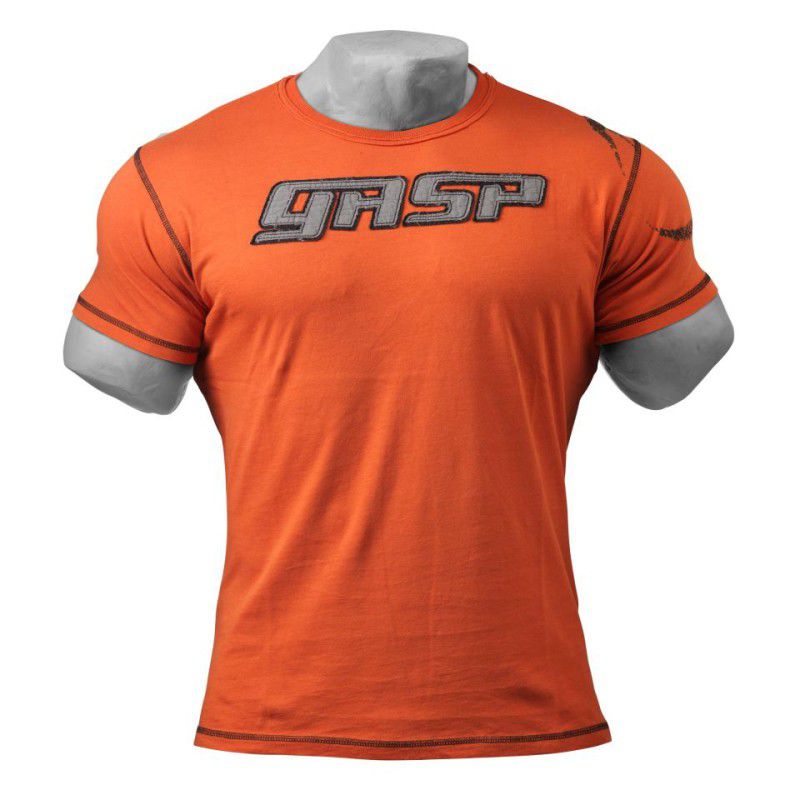 Яркая мужская футболка. Отлично сидит на накаченной фигуре – облегает грудь и немного свободна в поясе. На груди название производителя GASP. Эмблема на левом плече. Контрастные швы. Выполнена из натуральных дышащих материалов. Подходит для тренировок и улицы. Представлена в оранжевом цвете. Состав -100% хлопок.