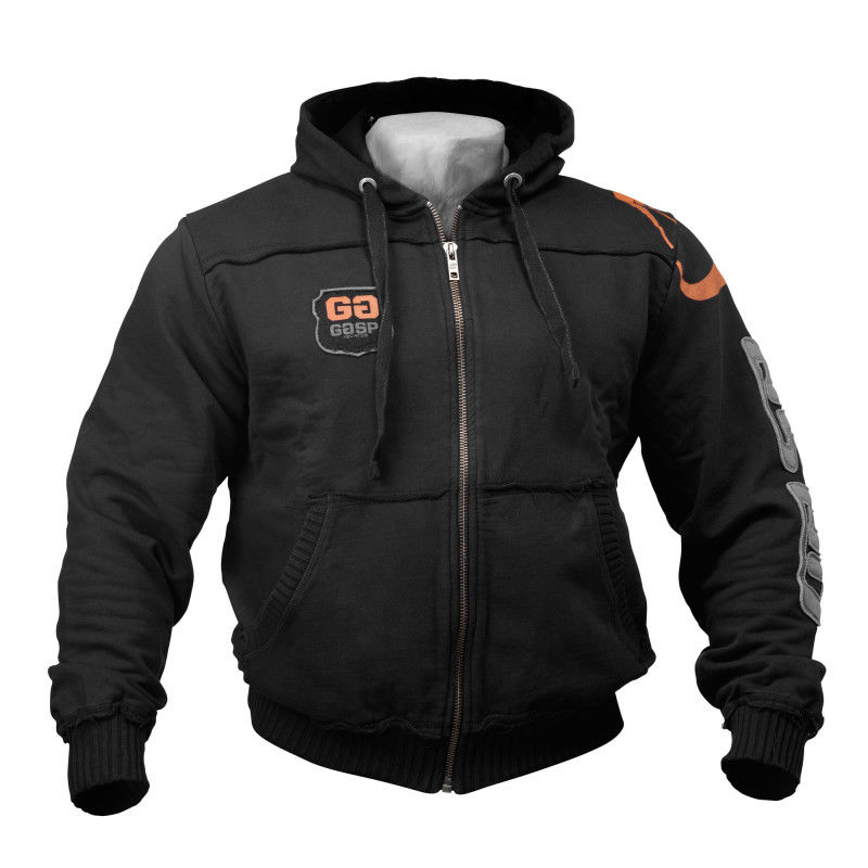 Теплая спортивная толстовка с капюшоном. Идеально подходит для тренировок. Выполнена из мягкого и приятного материала. На груди справа эмблема производителя, выполненная в оранжевом цвете. По периметру левого рукава надпись -название производителя. На левом плече нанесен рисунок. Резинки на поясе и на рукавах. Спереди два широких кармана. Основной цвет – черный. Материалы - 80% хлопка и 20% полиэстра.
