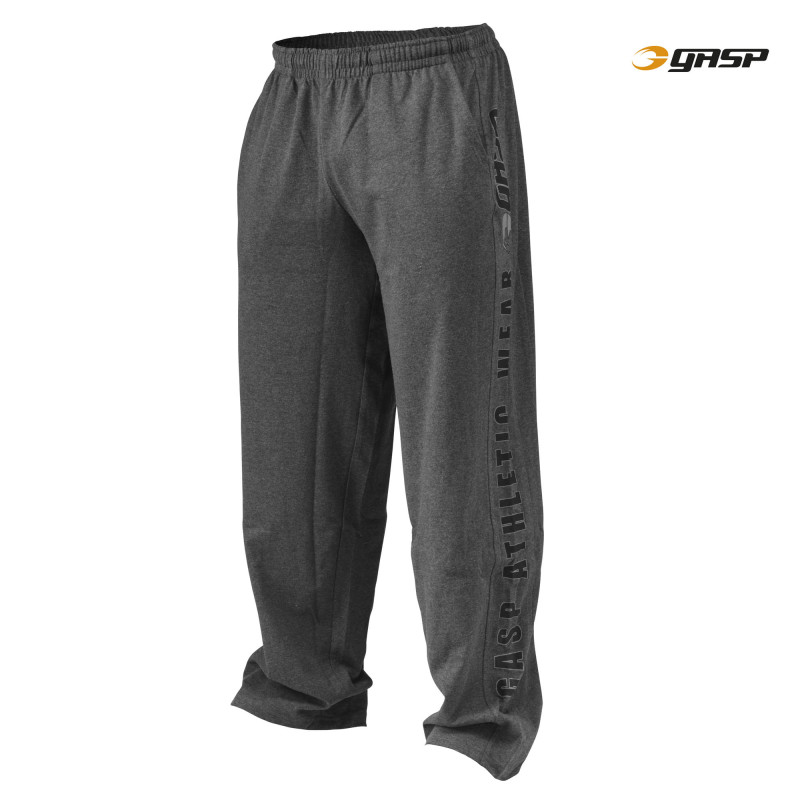Мужские спортивные брюки. Выполнены из мягкого приятного к телу натурального материала. Предназначены для людей с активным образом жизни. На поясе резинка. Вдоль ног на штанинах по бокам надписи от производителя, выполненные в черном цвете на специальных вставках. Основной цвет серый. Состав – 100% хлопок.