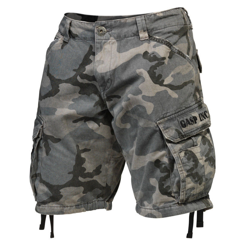 Шорты для активных людей. Предназначены для носки в повседневной жизни. Выполнены из плотной натуральной ткани. Оснащены большим количеством карманов – 2 спереди, 2 сзади и 2 по бокам. Внизу штанин завязки. Спереди на пуговице и молнии. Допускается комбинация с поясом. Представлены шорты в камуфляжной расцветке. Состав – 100% хлопок.