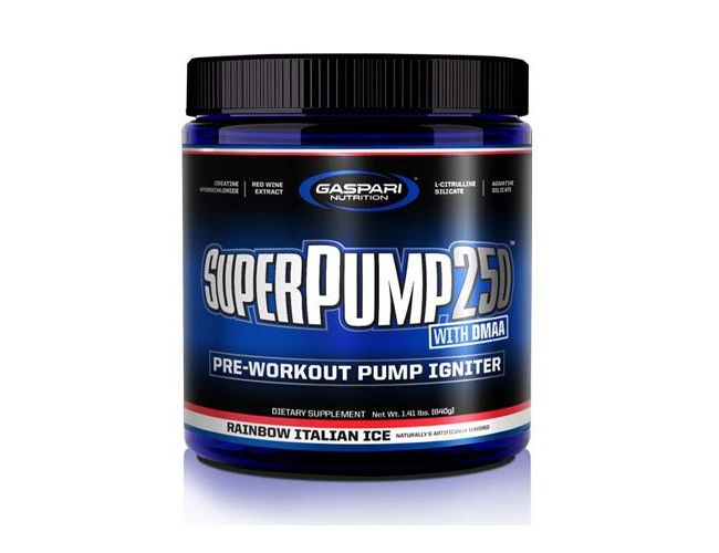 Gaspari Nutrition Super Pump 250 DMAA – предтренировочный комплекс для пампинга мышц, обеспечения организма спортсмена энергией, повышения фокусировки, а также показателей силы и выносливости. Основными компонентами добавки выступает 2 мощных бустера оксида азота – теобромин и DMAA (герань), которые стимулируют нервную систему. Прием предтренировочного комплекса Super Pump 250 DMAA позволяет организму атлета адаптироваться к интенсивным физическим нагрузкам за счет усиления выработки анаболических гормонов (включая тестостерон), которые улучшают рост мышечной массы.