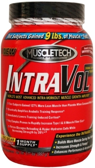 Спортивная добавка IntraVol, производителем которой является компания MuscleTech, является необычайно эффективным анаболическим средством, созданным преимущественно для употребления во время проведения тренировок. Все старания спортсмена увеличить силу и мускульную массу могут быть бесполезными, если его организм в процессе проведения тренировок не будет насыщаться необходимыми питательными компонентами. Как показали результаты научных исследований, в процессе выполнения различных упражнений на тренировке подзарядка организма играет важнейшую роль.