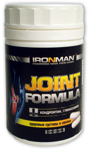 IRONMAN Joint Formula - препарат для поддержания здоровья суставов, хрящей, связок, улучшения состояния волос, ногтей и кожи, основанный на глюкозамине и сульфатах хондроитина. Эта натуральная формула повышает сопротивляемость организма воспалениям в связках и суставах, способствует быстрому восстановлению поврежденных хрящей и заживлению ран. Джоинт Формула создана специалистами компании Айронмен для людей после 50-ти лет, а также для бодибилдеров и атлетов, которые подвергают свои связки и суставы экстремальным нагрузкам. Данная спортивная добавка может использоваться для лечения и профилактики заболеваний костей и суставов.