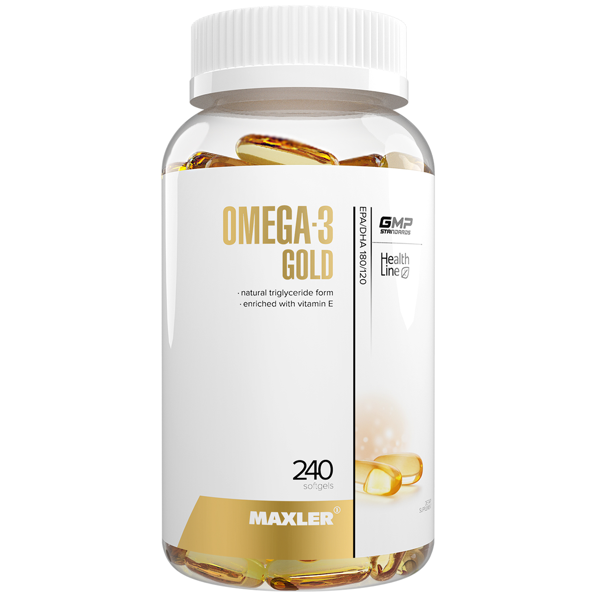 Омега-3 с витамином Е Maxler Omega-3 Gold TG - 240 гел.капсул (DE)
