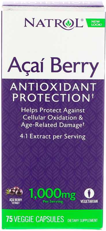 Natrol AcaiBerry 1000 мг – источник экстракта ягод Асаи, обладающих широким спектром положительных эффектов, но самым сильными из которых является антиоксидантный и иммунные эффекты. Используется, если вы живете в условиях плохой экологии, повышенных стрессов (в том числе физических) и хотите улучшить общее самочувствие.