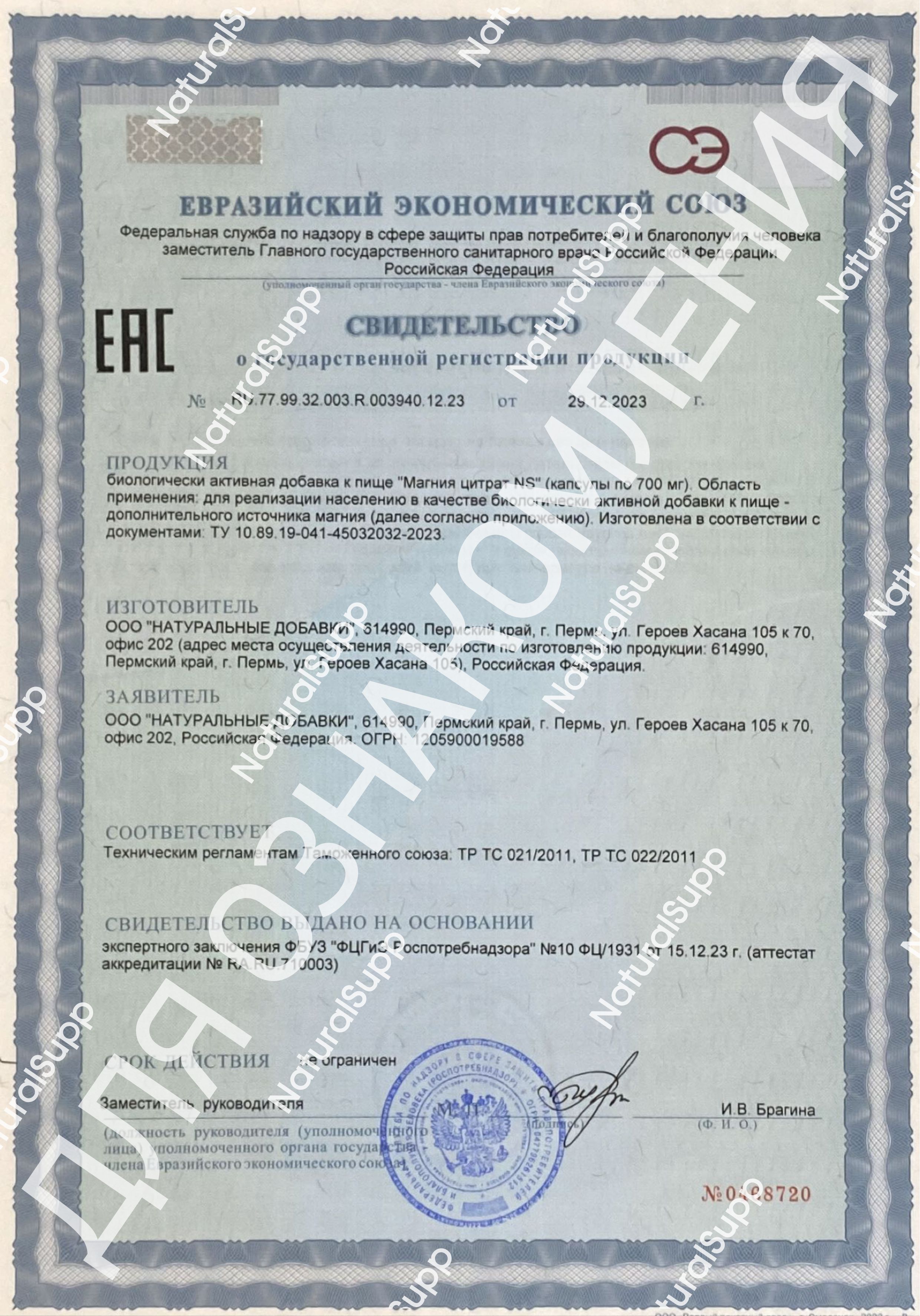 Храните добавку в сухом, прохладном месте, вдали от прямых солнечных лучей и влаги.