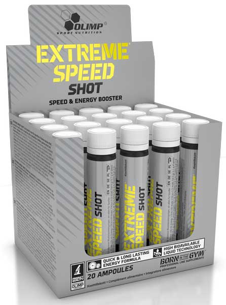 Ученые фирмы Olimp разработали и изготовили энергетический продукт (Гуарана) Extreme Speed Shot в форме ампул, который уже успел завоевать доверие профессиональных спортсменов. Это удобные в использовании препараты энергетического действия, которые удобно носить с собой. Спортивный продукт Экстрим Спид Сшот предназначен для употребления перед тренировкой, что обеспечивает повышение энергетического тонуса спортсмена и компенсацию недостатка сил. Также возможен прием в других случаях, когда необходимо повышение уровня энергии и умственной концентрации. Регулярный прием данного препарата помогает поддерживать оптимальный энергетический уровень, а в сочетании с интенсивными тренировками способствует повышению показателей силы и выносливости бодибилдера или атлета.