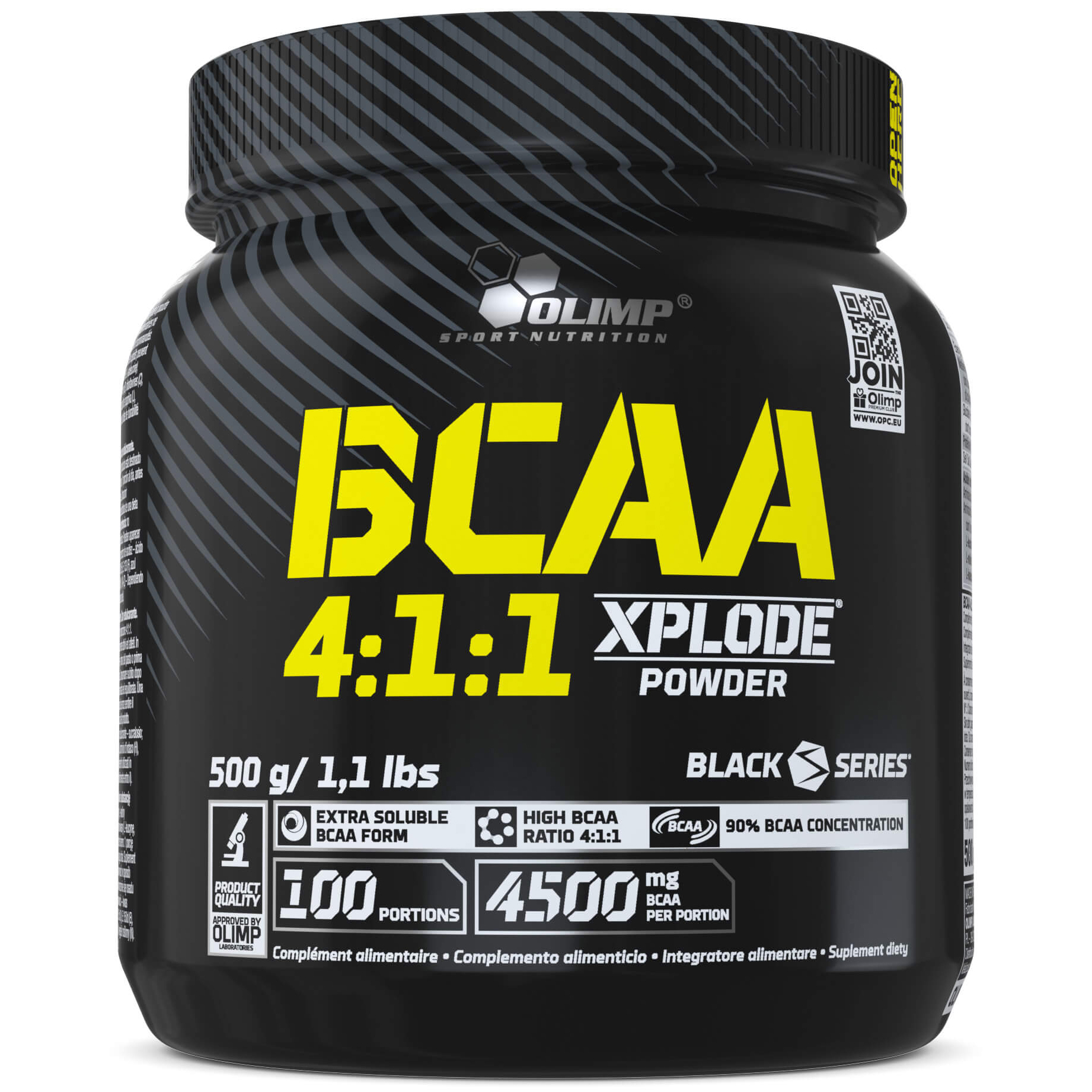 Olimp BCAA 4:1:1 Xplode Powder 500 гр – аминокислотный комплекс, в составе которого присутствует три незаменимые аминокислоты: Лейцин, Валин и Изолейцин в пропорции 4:1:1. Изготавливается польской компанией Olimp Laboratories на высокотехнологичном оборудовании. Это спортивное питание подходит для сушки тела, наращивания мышечной массы и может использоваться при похудении.