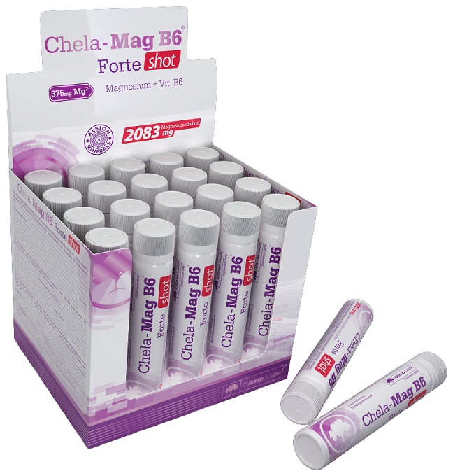 Спортивное питание Chela-Mag B6 forte shot представляет собой витаминно-минеральный комплекс, в котором содержится магний - необходимый для жизнедеятельности спортсмена минерал, который содержится в составе больше чем 300-ста ферментов в человеческом организме. Витаминные комплексы для спортсменов представлены в форме ампул, в которых содержится по 375мг магния в каждой, что является 100% необходимой суточной дозы.