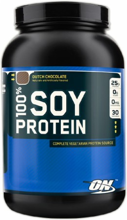 100% Soy Protein – протеин для набора мышечной массы от компании Optimum Nutrition, полученный из сои. Спортивный продукт поставляет в мускулы спортсмена питательные вещества, которые отдаляют наступление мышечной усталости, уменьшают риск травматизма. Данный спортивный препарат является сравнительно недорогим и качественным источником белка с приятным вкусом, он способен обеспечить организм необходимой порцией незаменимых аминокислот. 100% Сой Протеин разработан специалистами фирмы Оптимум Нутришн с учётом потребностей организма спортсменов, вегетарианцев и особ, склонных к пищевым отравлениям.