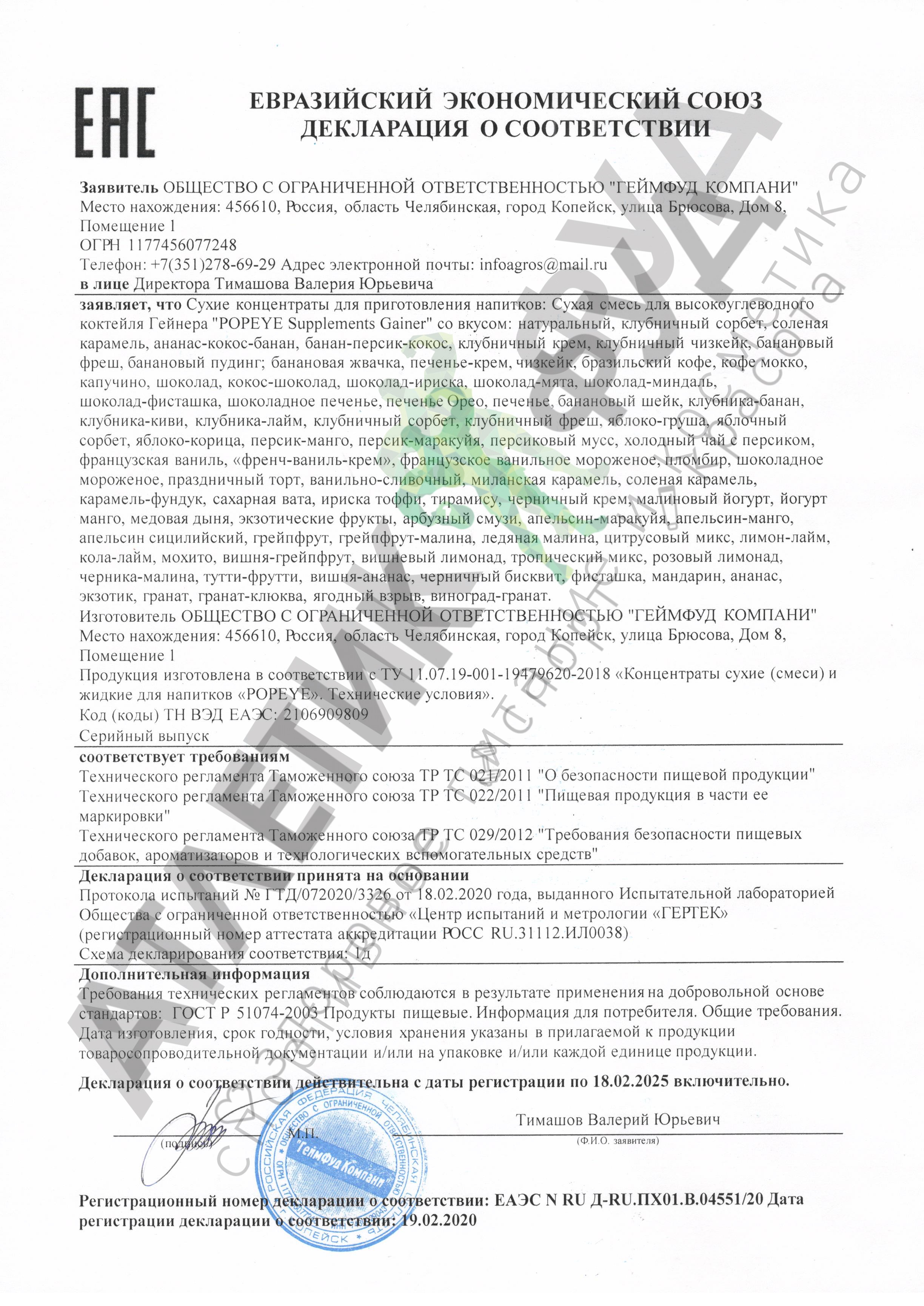 Прием Попай Супплементс Гейнер противопоказан беременным, кормящим женщинам, при индивидуальной непереносимости. Не принимайте, если имеете лишний вес.