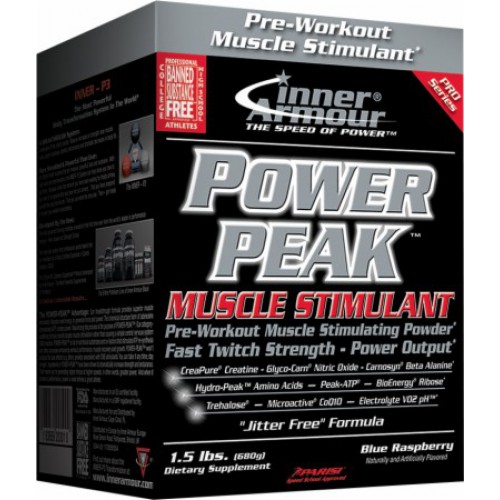 Power-Peak Muscle Stimulant - это предтренировочный комплекс от производителя Inner Armour, который рекомендуется употреблять перед тренировкой для накопления организмом питательных веществ, которые способствуют улучшению работоспособности организма, заряда бодрости и увеличению сил. Рост этих показателей приводит к получению хорошего результата на тренировочных занятиях. Чем быстрее аминокислоты накапливаются в кровяном потоке организма, тем быстрее происходит увеличение мышечной массы организма. Для этого, в состав препарата добавлен гидролизат. Действие предтренировочного комплекса направлено на получение повышенного роста сухой массы мышц у человека, а также способствует борьбе с лишней жировой прослойкой в организме.