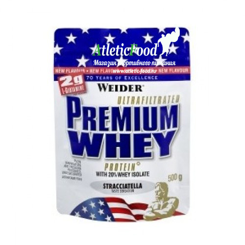 Whey Protein – английское название протеина, полученного из молочной сыворотки. Такой протеин имеет самую высокую биологическую ценность, легче воспринимается организмом. Разработанный компанией Weider протеин Premium Whey являет собой белковый порошок высокого качества, удовлетворяющий жизненно-необходимые потребности организма, отличающийся довольно приятным вкусом. Немаловажную роль играет метод изготовления, потому как в качестве сырья здесь используется микрофильтрованный белок, не обладающий способностью выдерживать высокие температуры, повышенное давление. Продукт содержит в своем составе глютамин и наиболее важные аминокислоты с BCAA.