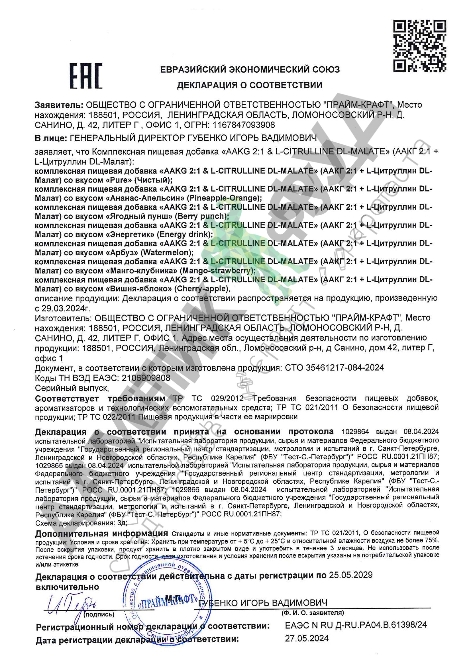 Прием Крафт ААКГ 2:1 + Л-цитруллин противопоказан при индивидуальной непереносимости, во время беременности и лактации.