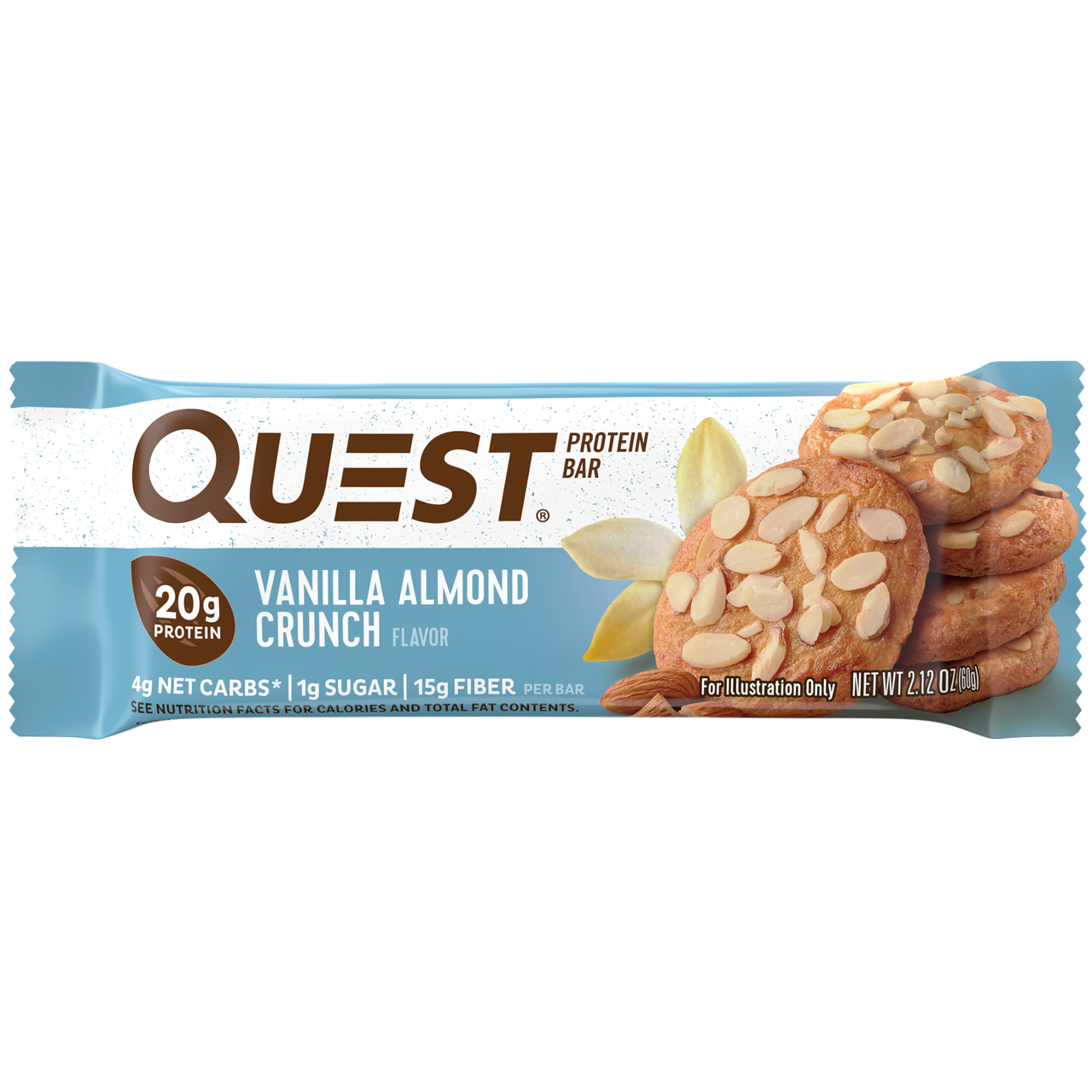 Вкусный, питательный протеиновый батончик Quest Bar со вкусом миндаля и ванили создан для полезного перекуса. Он не вредит фигуре и может использоваться в качестве десерта на низкоуглеводной диете.