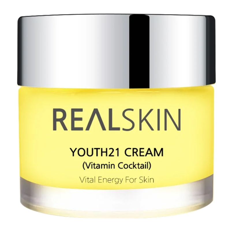 RealSkin Крем Для Лица Youth 21 Cream (Vitamin Cocktail) – 50 грамм содержит в себе комплекс витаминов и полезных минералов. Все компоненты в составе данного средства направлены на интенсивное увлажнение кожных покровов. Систематическое использование представленного косметического продукта позволяет нормализовать водный баланс в тканях. Разгладить мелкие морщинки. Вернуть эпидермису упругость и эластичность. Выровнять тон лица, а также избавиться от ощущения сухости. Крем подходит для проблемной и сухой кожи.