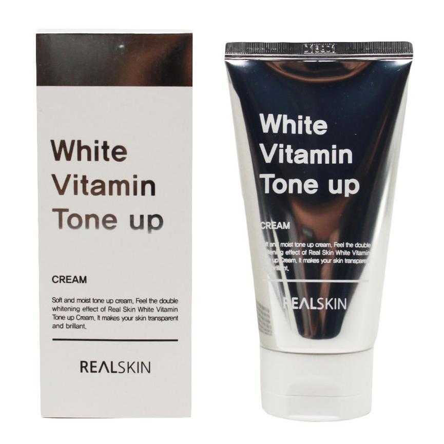 RealSkin Крем Для Лица White Vitamin Tone-Up Cream - 100 грамм для дневного применения. Представленный косметический продукт разработан компанией-производителем для любого типа кожи. Систематическое использование его позволяет избавиться от сухости кожных покровов. Снять раздражение и шелушение. Увлажнить дерму необходимыми минералами, а также обогатить витаминным комплексом.