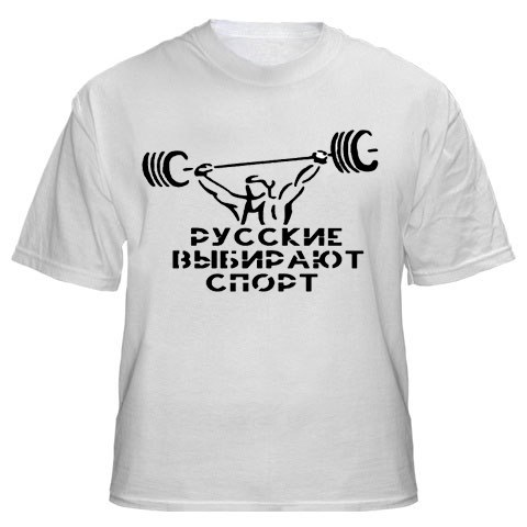 Спортивная футболка 100% хлопок с надписью "Русские выбирают спорт".